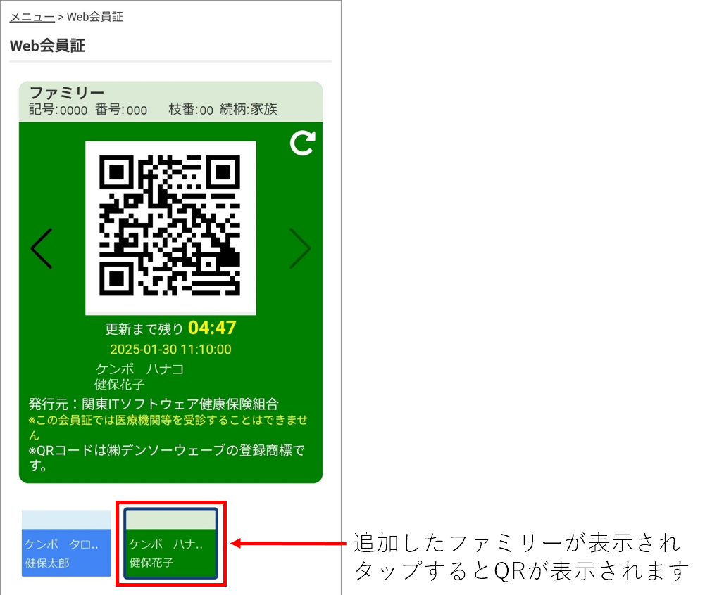 - Web会員証画面でファミリーを選択できるようになり、表示したいファミリーをタップすると、ファミリーの資格情報を表示・確認できます